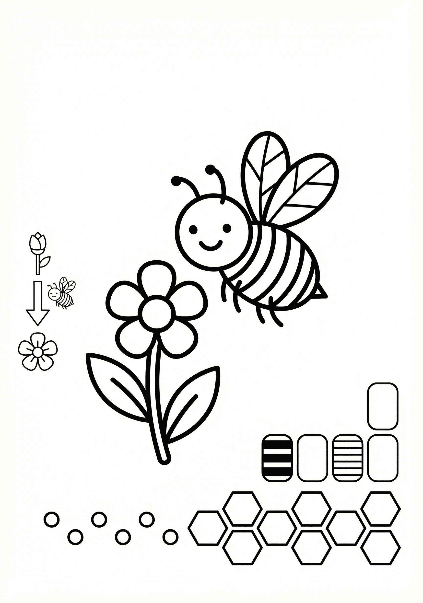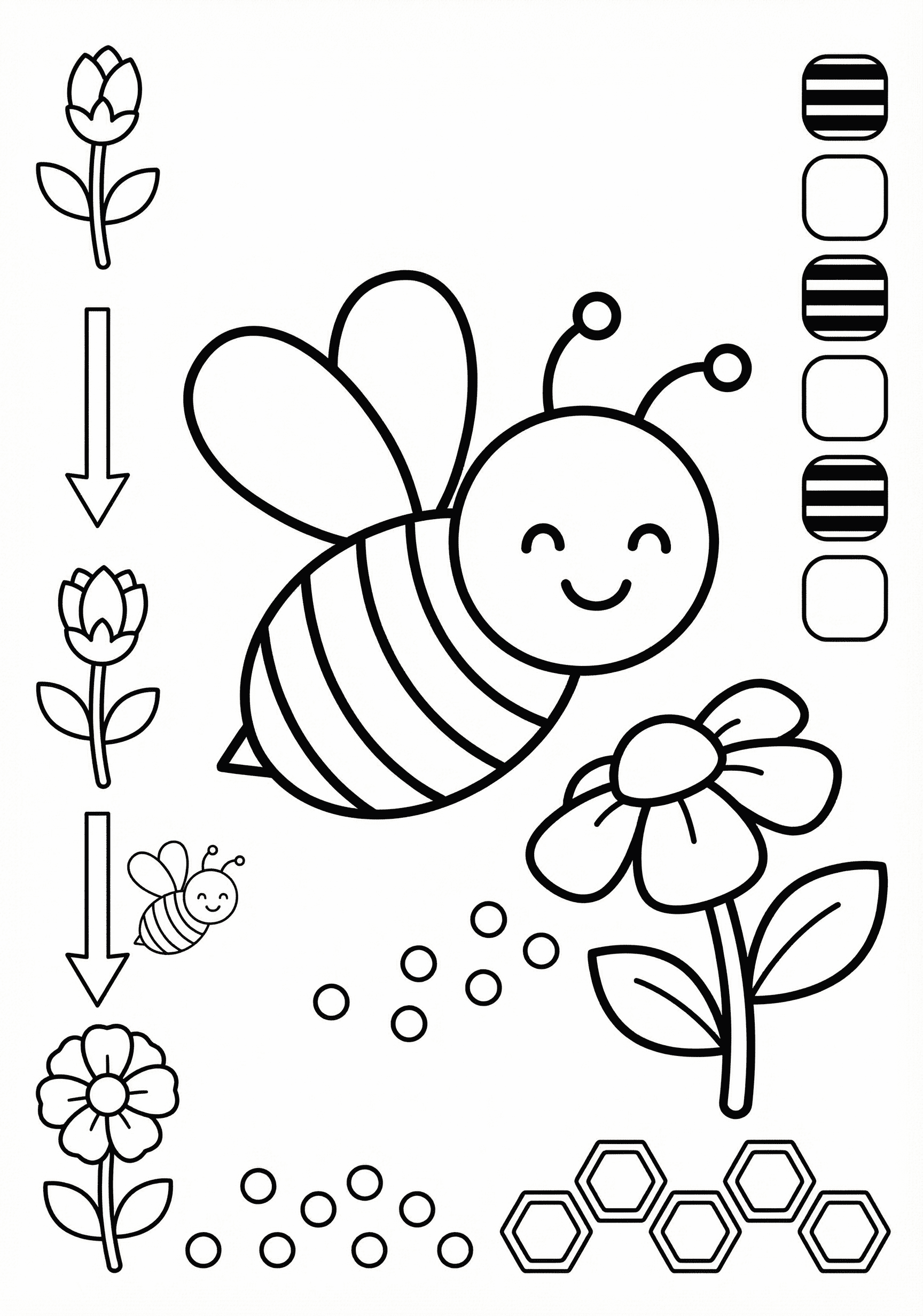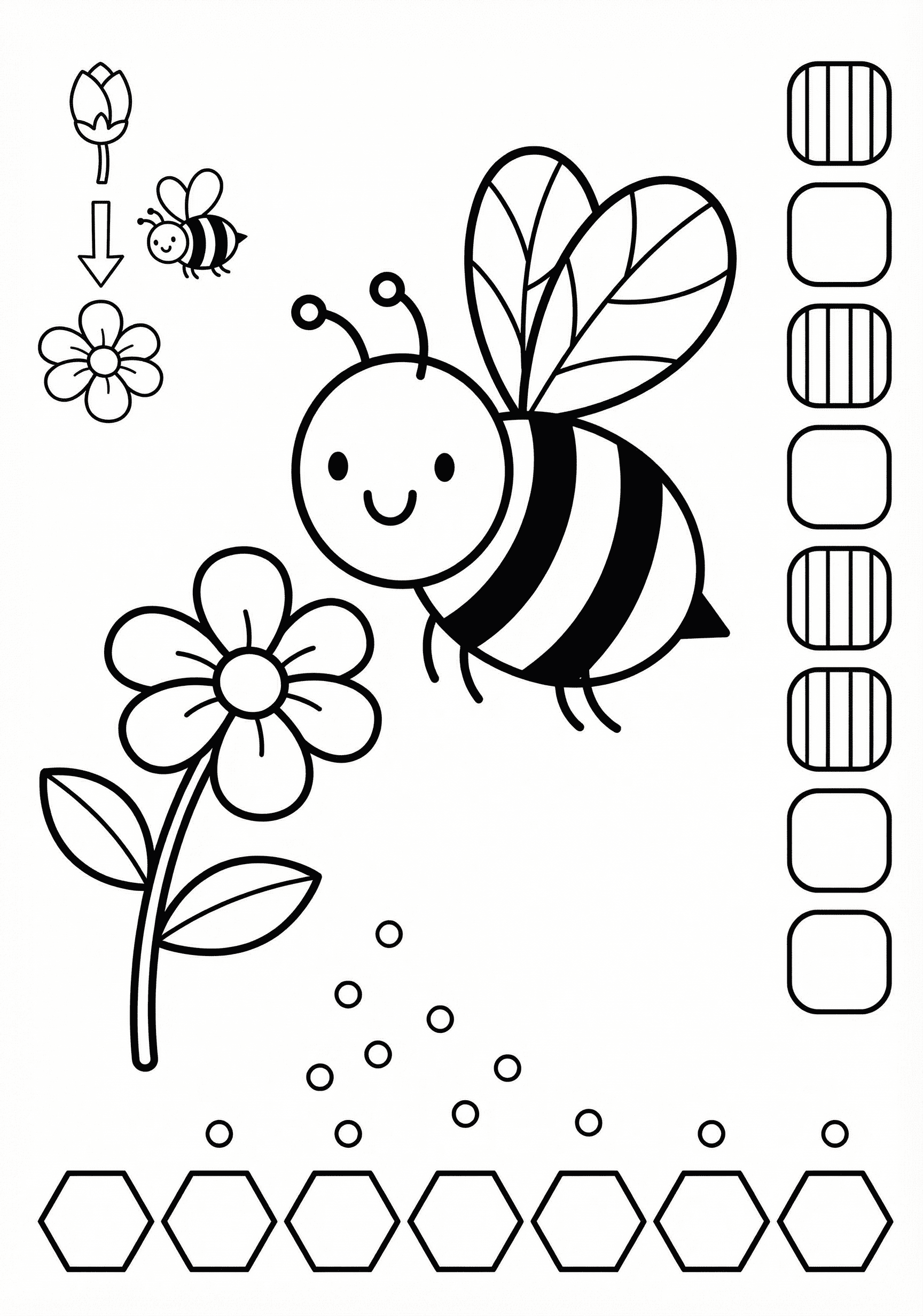 Para crianças a partir de 3 anos, colorir é uma preparação essencial para a escrita. Os movimentos circulares e lineares usados para preencher uma abelha são os mesmos necessários para formar letras e números.
