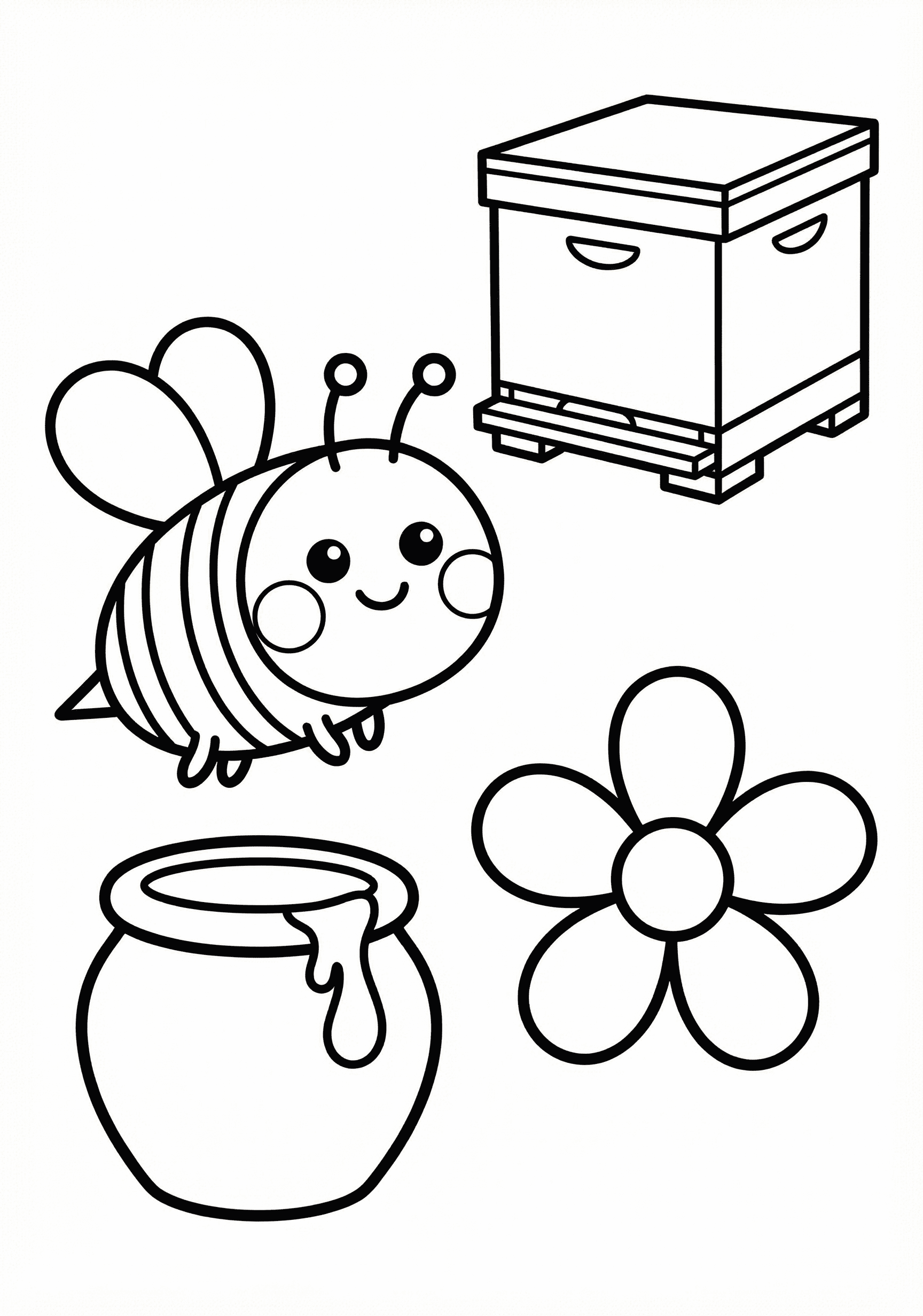 Para as crianças que estão começando sua jornada no mundo das cores, temos desenhos simples e adoráveis de abelha feliz: