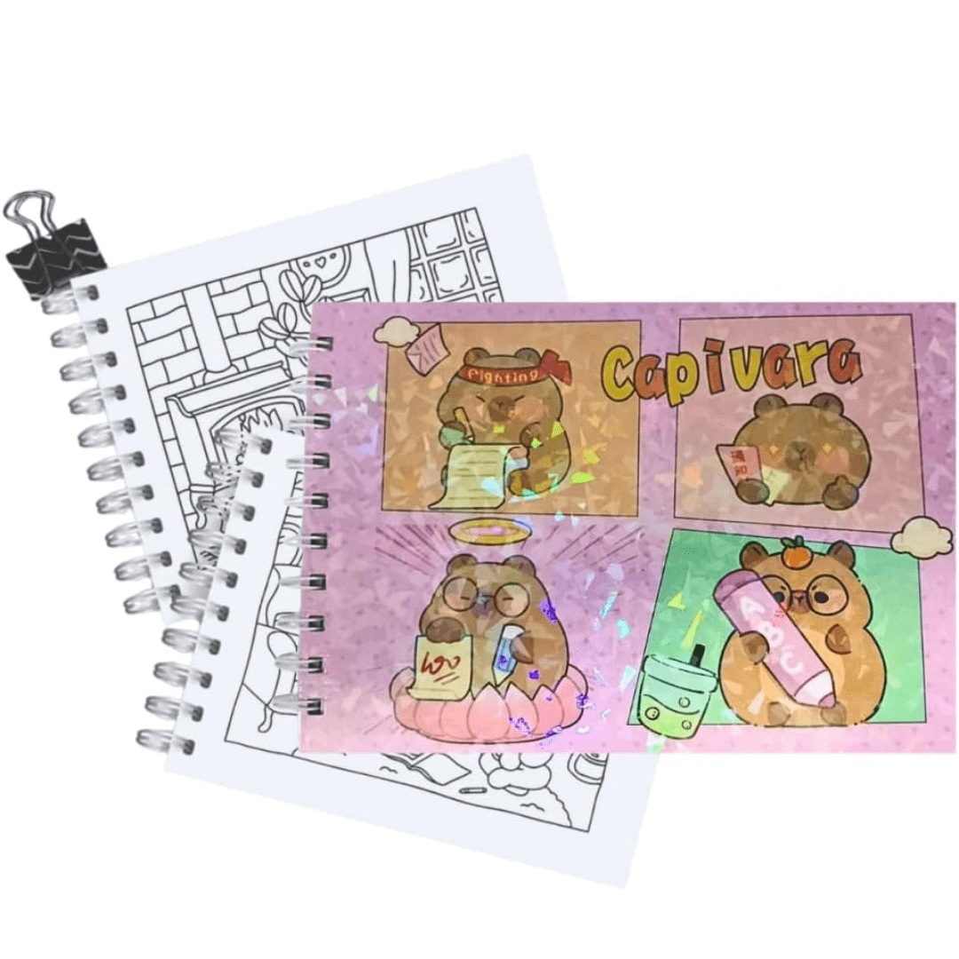 Livro de Colorir Capivara com Capa Dura Holográfica