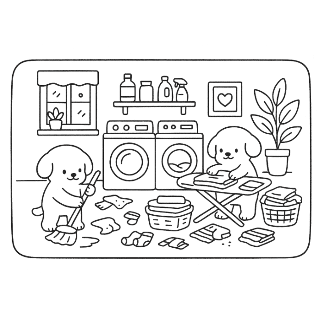 Bobbie Goods Para Imprimir pdf grátis Brasil completo Uszon Emran Ahmed: cachorrinhos big head limpando chão, passando roupa na tábua, máquina dupla, sabão coração e cesto cheio. Janela com planta – desenho bobbie goods original para imprimir A4 limpo, perfeito bobbie goods para colorir e imprimir pinterest.