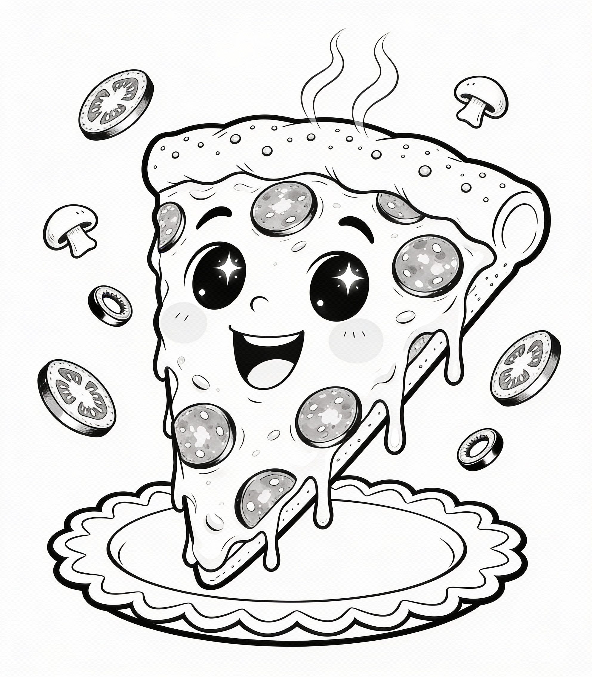 Nesta categoria, os ingredientes ganham vida! Imagine uma fatia de pizza onde o queijo, o pepperoni e os cogumelos também têm rostinhos felizes: