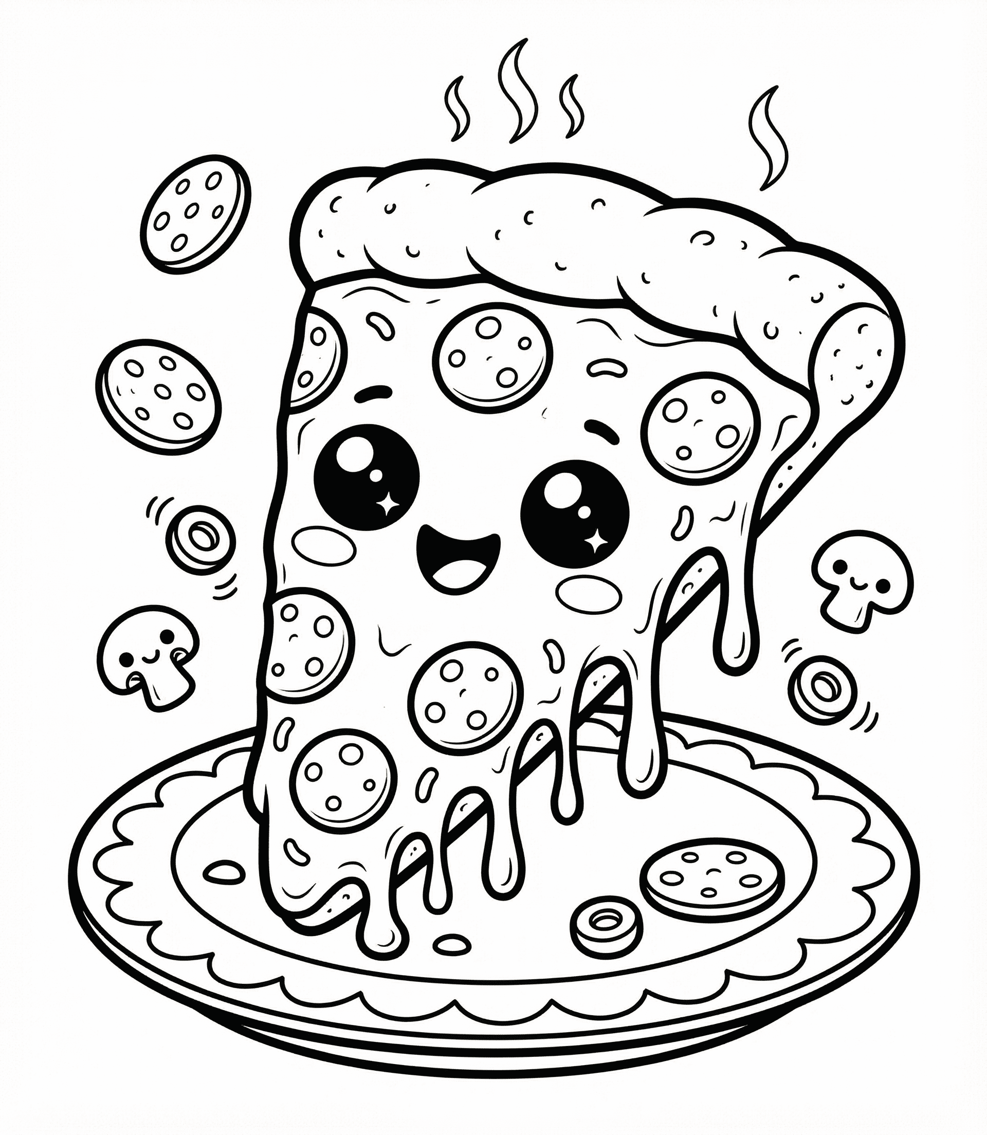 Baixe GRÁTIS 85+ desenhos de Pizza Feliz para colorir! 🍕 Páginas para imprimir, colorir online e desenvolver a criatividade das crianças. Download instantâneo na Uszon!