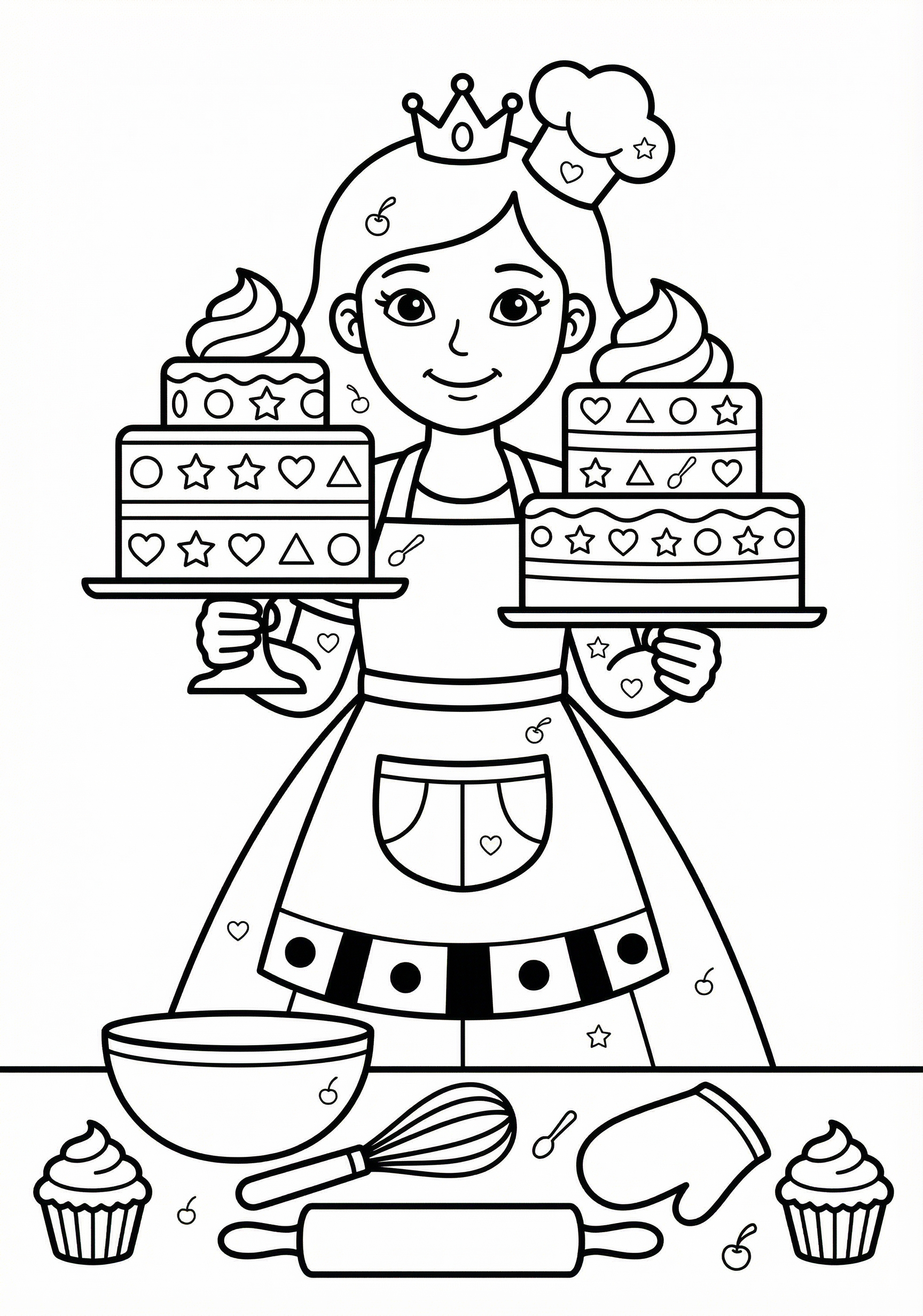 - Princesa preparando cupcakes mágicos – Um desenho encantador com uma princesa decorando bolinhos com estrelas e corações
